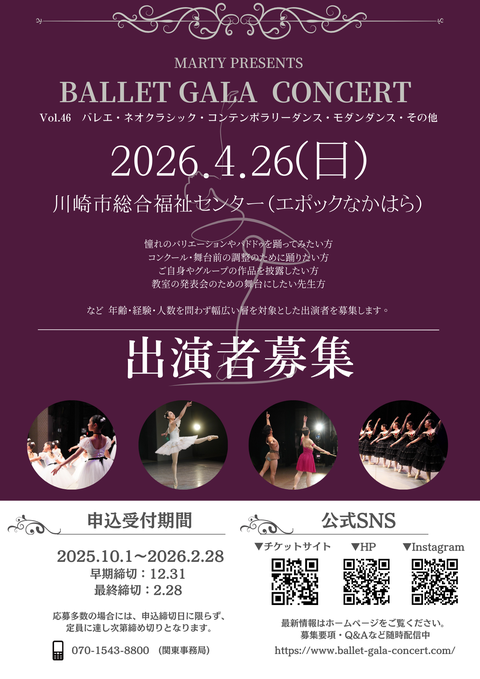 The national ballet pre-competition and ballet competition in Japan sponsored by Marty of ballet and dance equipment. It will be held in Tokyo in 2021. Experienced judges who have been active in overseas and domestic ballet companies and international companies. Various awards and supplementary prizes depending on the level and category. We will inform you of the schedule and cost of the competition. Breaking news on the results of qualifying and decisive battles. Many participants and instructors of various levels gather from all over Japan, from beginners to regular winners. Winners have scholarships and study abroad permits from overseas and domestic ballet companies and companies. We are looking for many participants and young dancers to join the ballet company, study abroad, and win the competition.